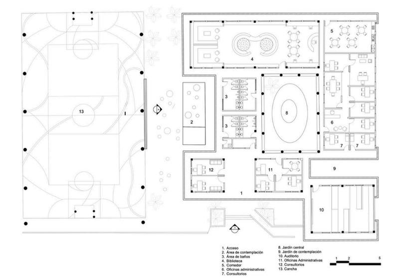 The design is based on the duality of privacy and openness. The building is organized around interior courtyards (patios), which function as "lungs" for light and ventilation, and as transitional spaces. Circulation is clear, and the Indoor-Outdoor Connection is achieved through courtyards and large windows, creating an welcoming and therapeutic environment (Biophilic Architecture).