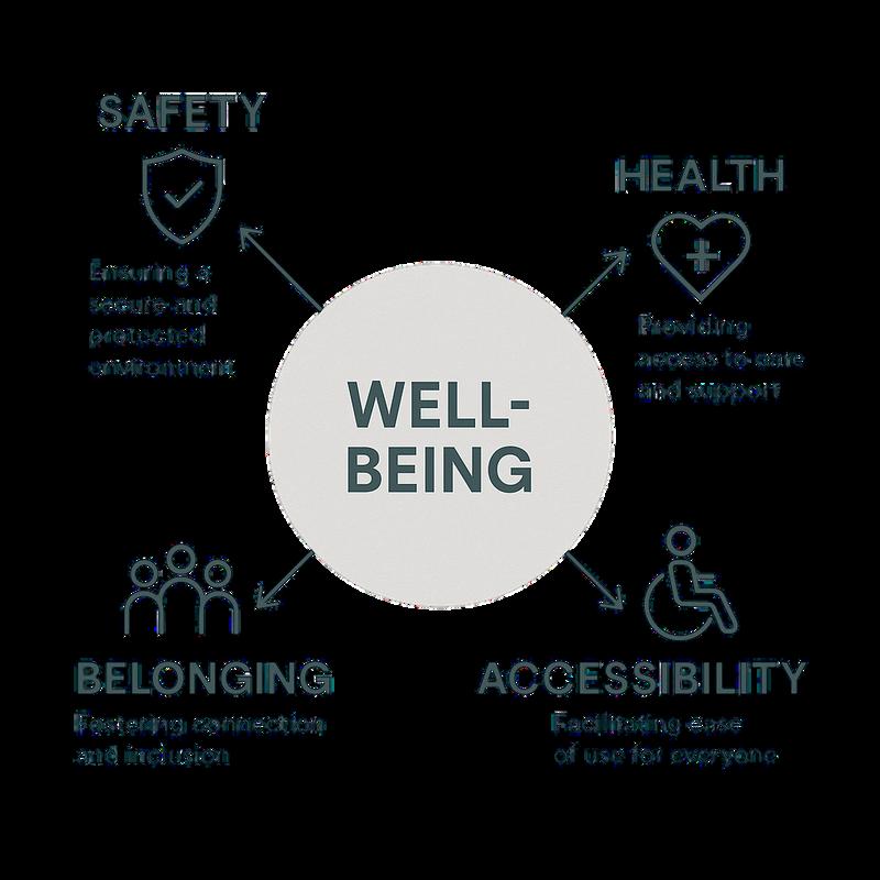 The final outcome illustrated is integrated well-being, achieved through improved access, prevention, and community connection.