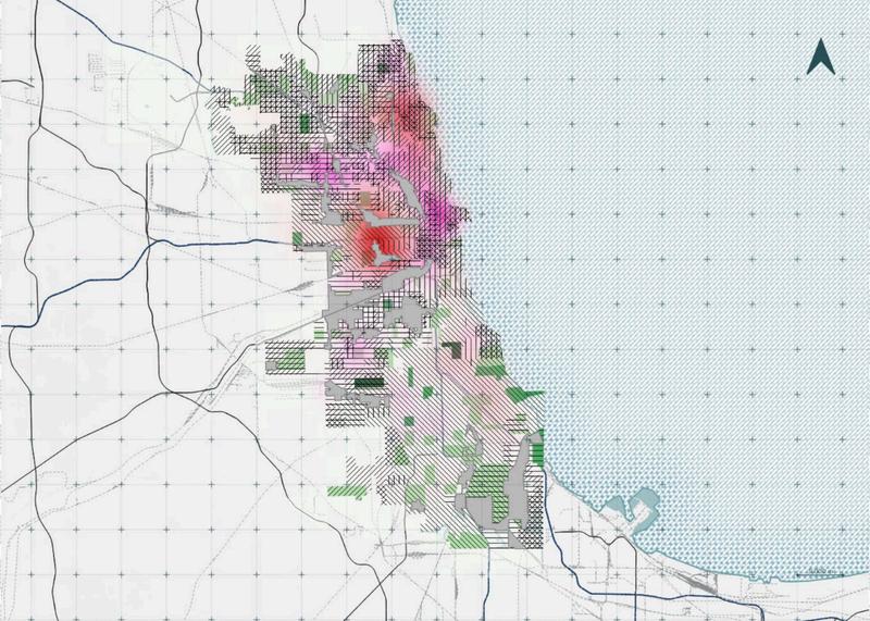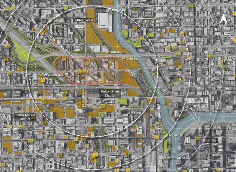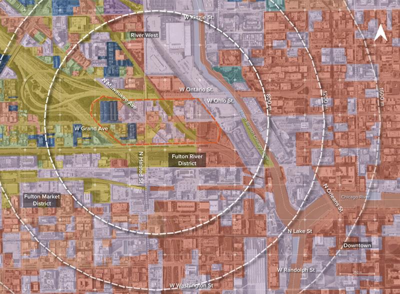 The study area, located in Chicago’s northwestern edge near Downtown, has evolved into a high-income, predominantly white enclave. Over the past two decades, massive reinvestment has reshaped the district, replacing industrial infrastructure and working-class immigrant communities with high-density housing, retail clusters, and tech-oriented office spaces. This wave of adaptive reuse marks a shift in Chicago’s economic priorities: historic industrial shells have been converted into creative workplaces and lifestyle developments, while the area’s original cultural and economic identity has been systematically displaced.