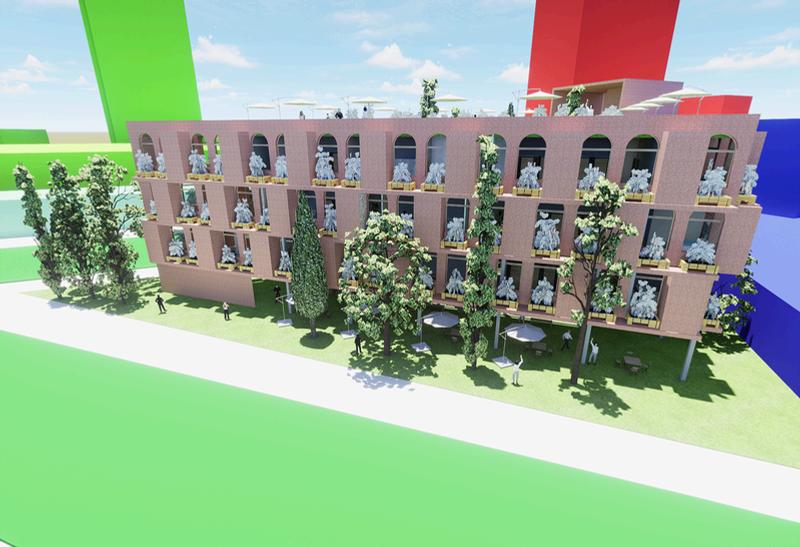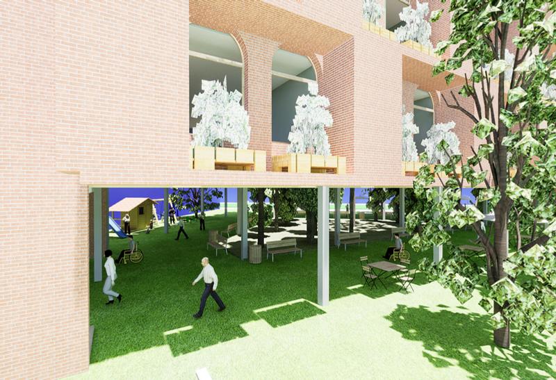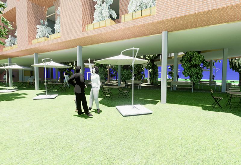 The building’s material strategy integrates brick, wood, steel, and latticework to articulate an architecture that is simultaneously robust, warm, and welcoming. Material selection is guided by criteria of durability, sustainability, and cultural resonance, reinforcing the idea that community care must be expressed through dignified architecture rather than minimal solutions. This palette establishes a balance between permanence, transparency, and human scale.