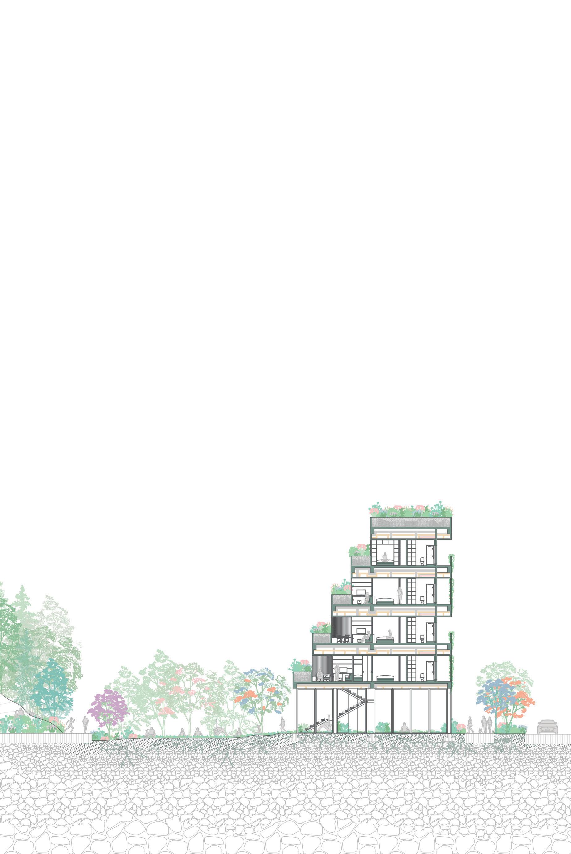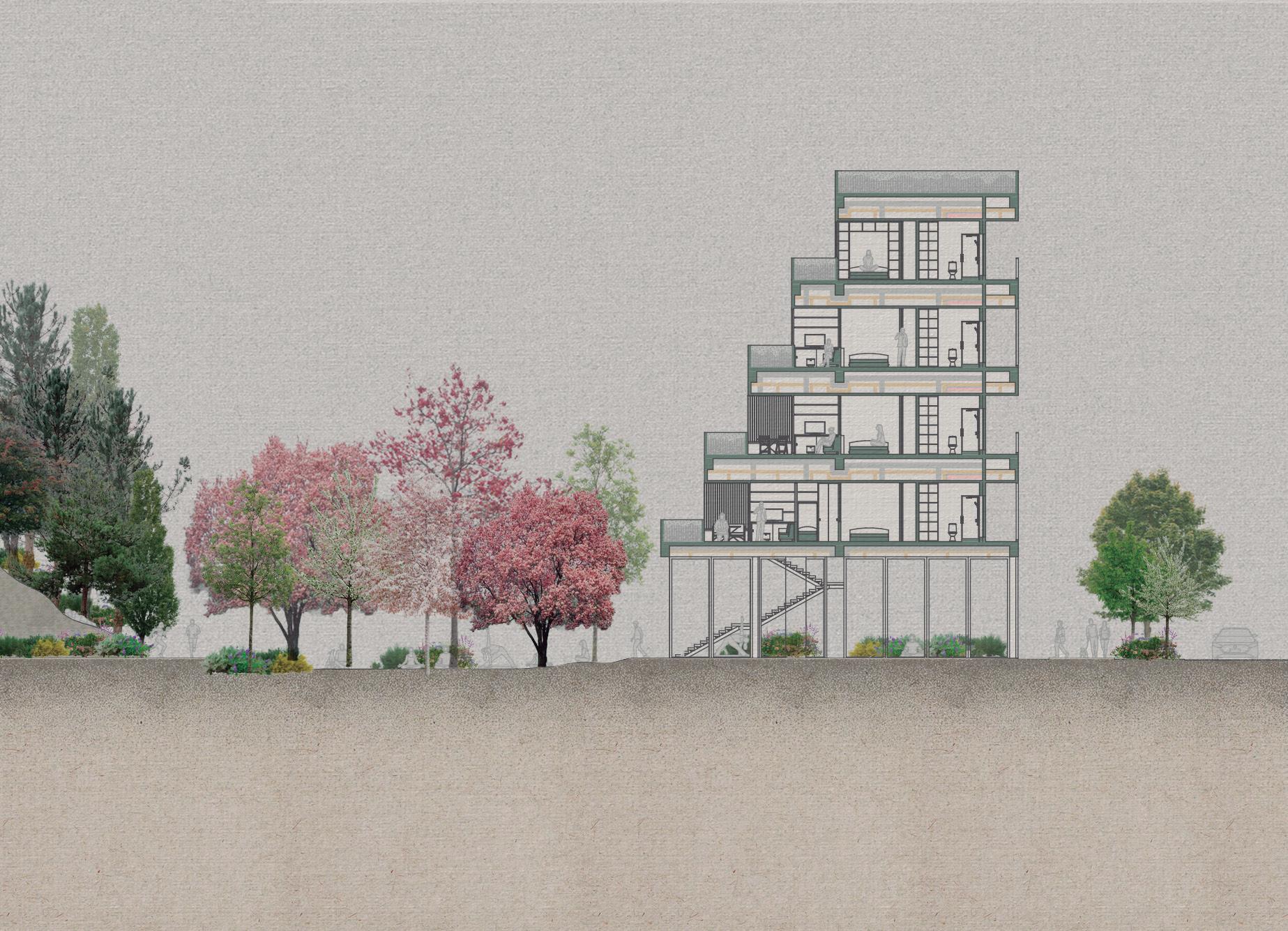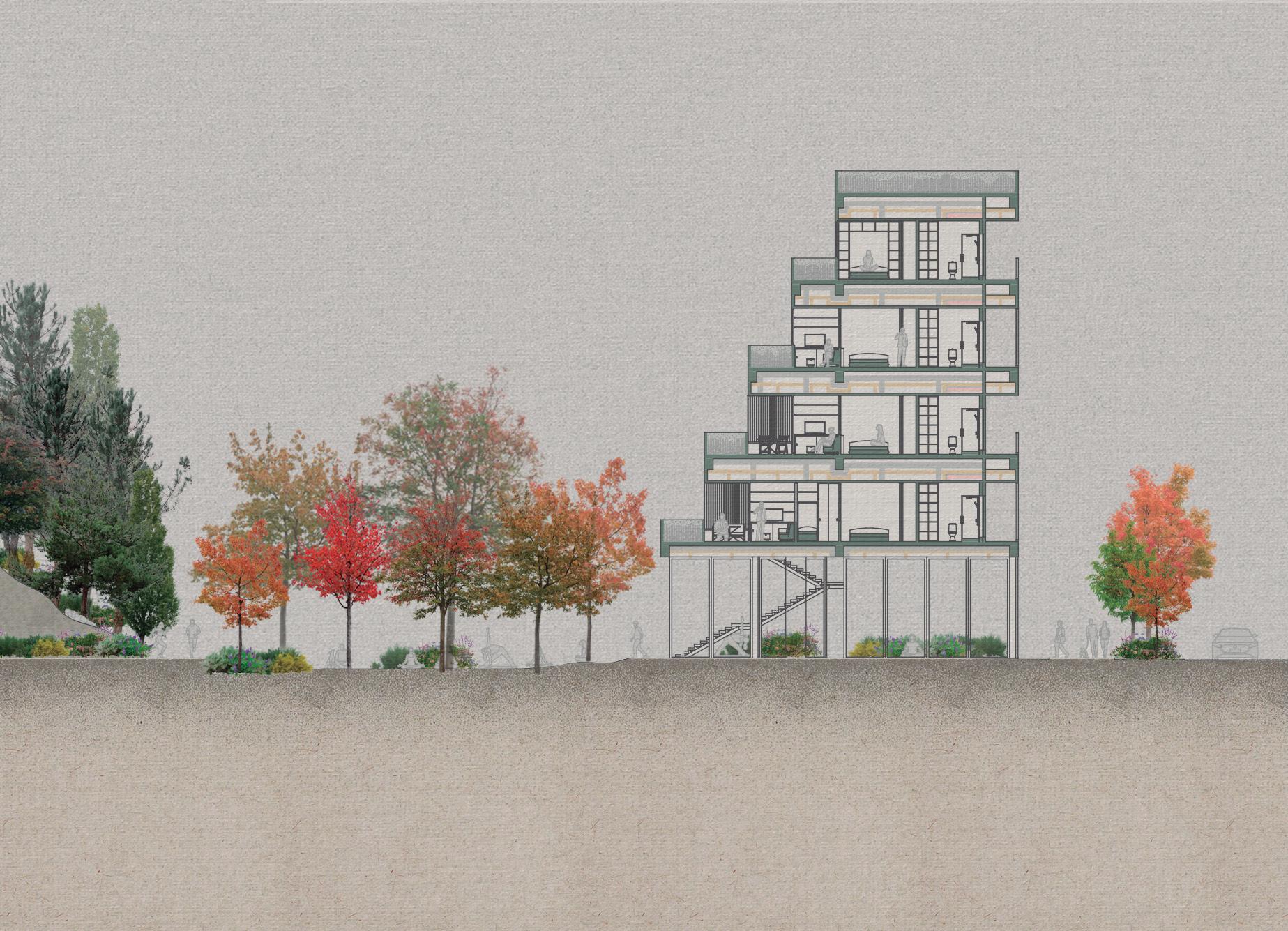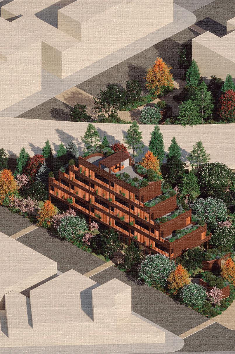 The project is characterized by fast and controlled construction: thanks to the prefabrication of its components, the timber structure was completed in approximately 70 days from the arrival of materials on site—considerably faster than a conventional project of this scale. Its design houses a student residence with over 400 beds, combining private spaces (rooms) with shared areas, which promotes community, social interaction, and functionality.