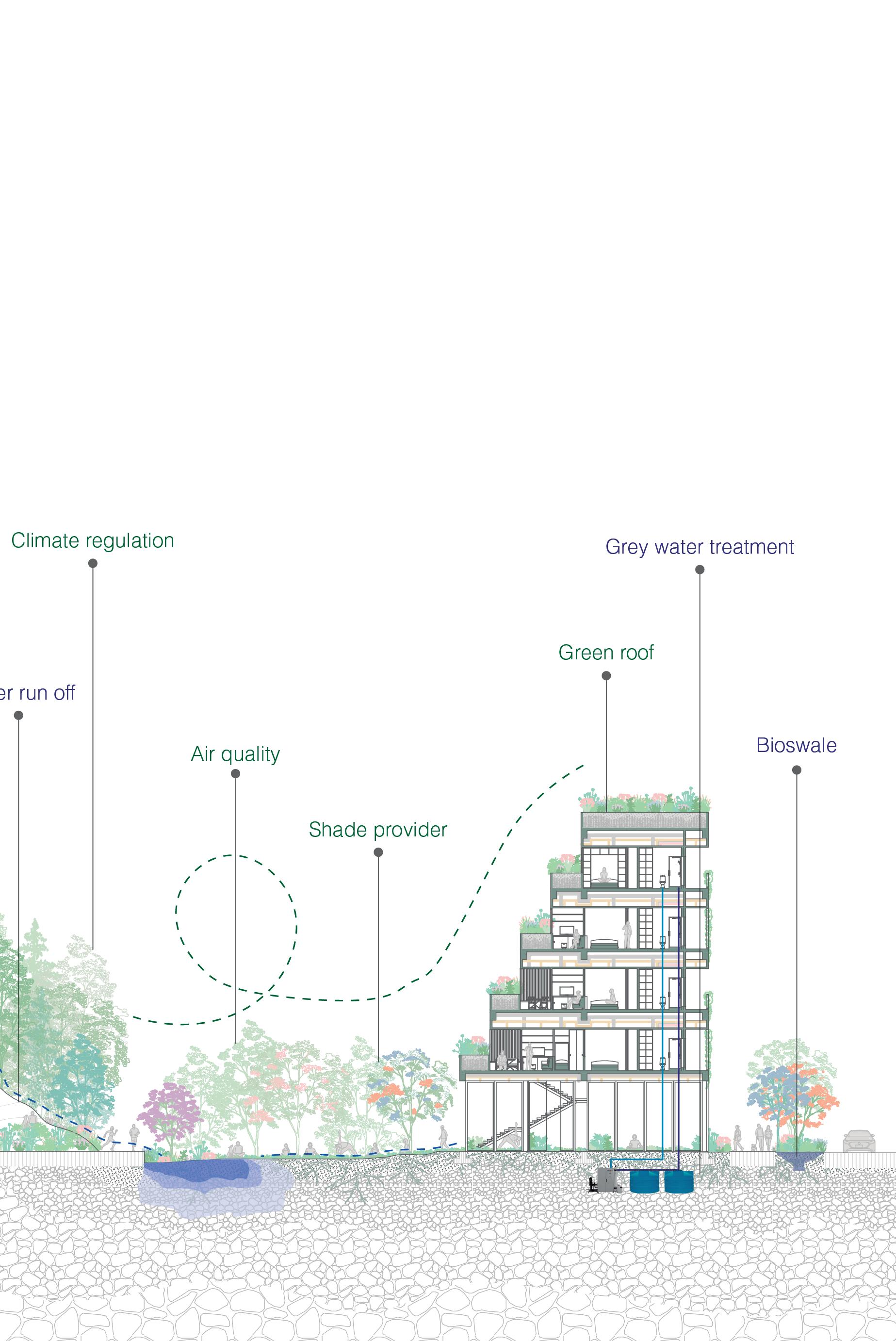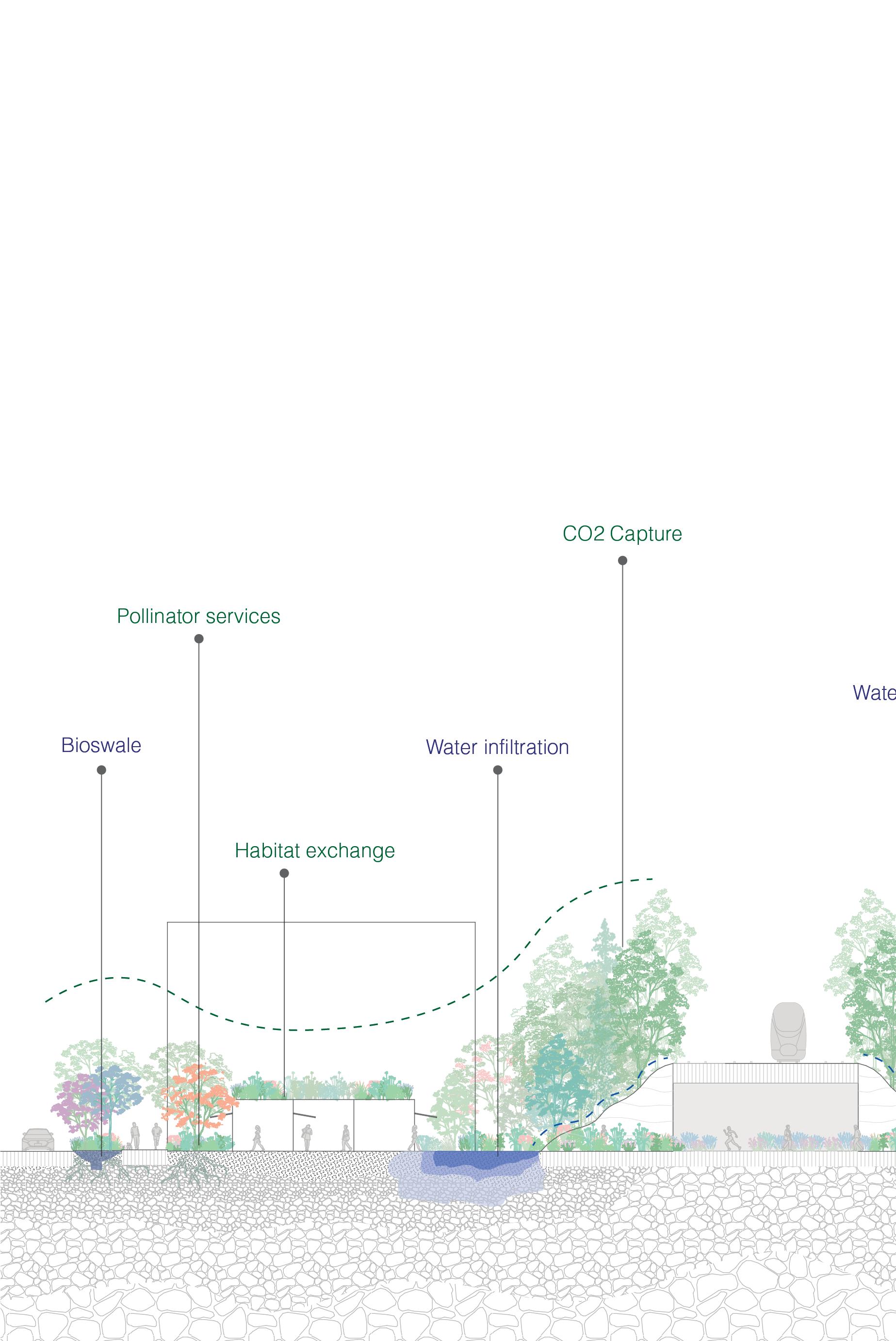 Adaptive reuse is about taking infrastructure that is underused or normally inaccessible and transforming it into meaningful, welcoming public spaces. Urban ecology comes into play by incorporating native plants, walking paths, and gardens, which not only create habitats but also improve the city’s microclimate. The design encourages movement and interaction, providing areas to walk, pause, and gather socially, fostering both physical activity and mindful engagement. Connectivity is also key, linking fragmented parts of the city, much like green corridors connect parks and open spaces. Finally, flexibility and inclusivity ensure that the space can accommodate a variety of activities—recreational, social, and cultural—while remaining seamlessly integrated into the urban fabric.
