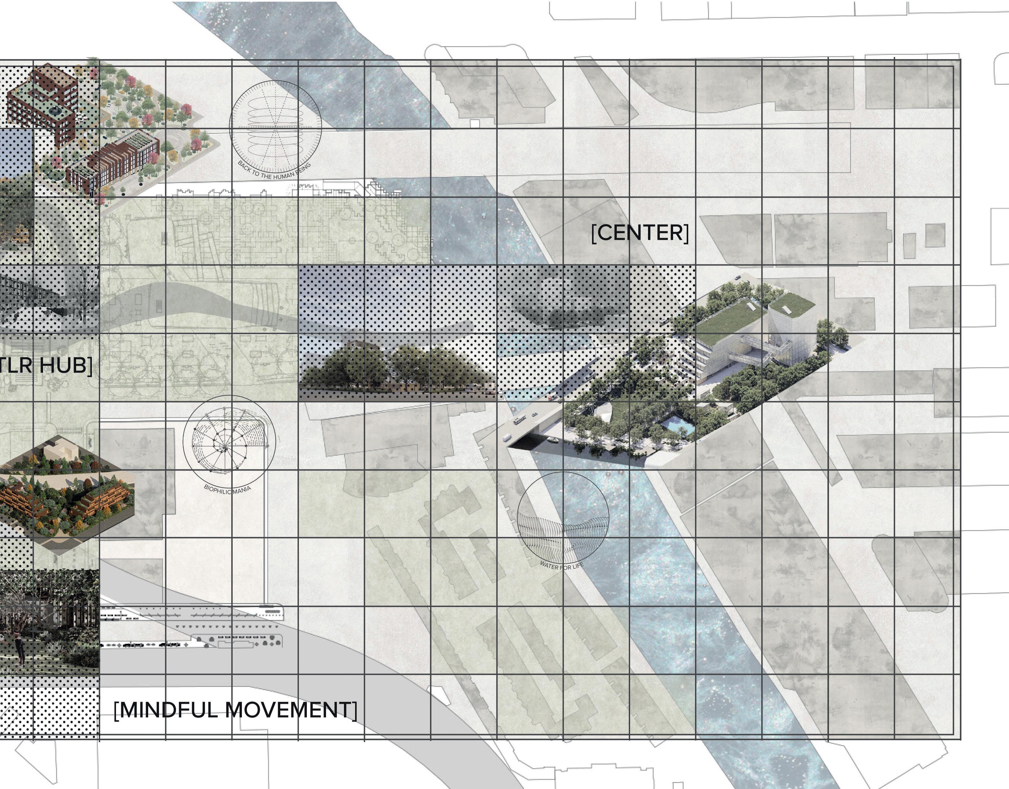 An urban ecosystem that weaves together vertical wellness parks, pocket gardens, communal rooftops, and neighborhood wellness centers into a continuous network. By transforming residual and underused spaces, it creates accessible green infrastructures that promote physical activity, mental health, social interaction, and ecological resilience, embedding well-being into the everyday fabric of Chicago.
