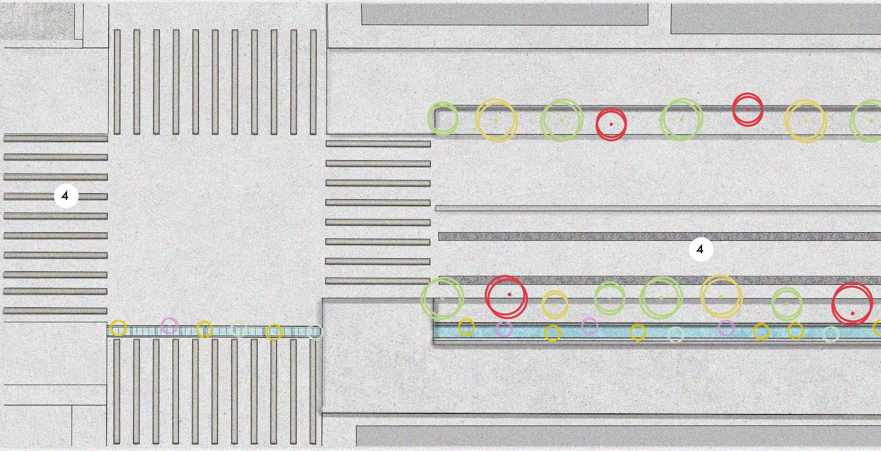 Ambas anclas fueron estratégicamente seleccionadas después de un análisis del sitio. Llegamos a la conclusión de que estos dos espacios son puntos que tienen oportunidades en el sitio, el primer lugar a intervenir es una plaza cívica con una iglesia al costado, en la cual, en la calle perpendicular se pone un tianguis una vez por semana, debido a esto se decidió intervenir esta calle secundaria, ya que como segunda ancla, está un predio abandonado con fácil accesibilidad. En el mapa de la siguiente página, se hizo un análisis en un radio de 500m, en los cuales se puede observar que en esa área hay pocos espacios sociales, deportivos, servicios, en pocas palabras, falta de equipamiento.