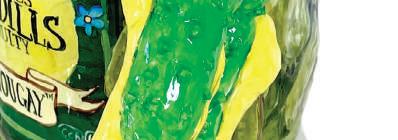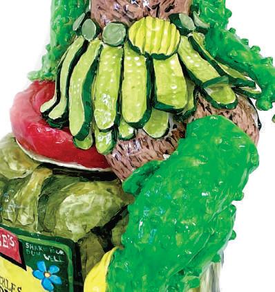 Soon af ter Strub’s was sold to Whyte’s, Jonah’s uncle star ted an independent bespoke dill busines s under the name Mart y’s Pickles as one way of maintaining the family legacy His 27-year-old nephew is taking a dif ferent approach During an ar tist residency at the Banf f Centre last year, Jonah imagined his own drag queen alter ego, Loxanne Creamcheese, embodying Jewish foods through glazed stoneware and fake eyelashes, and opted for the one synonymous with his surname. The name of the piece? Dressed to the Brines n