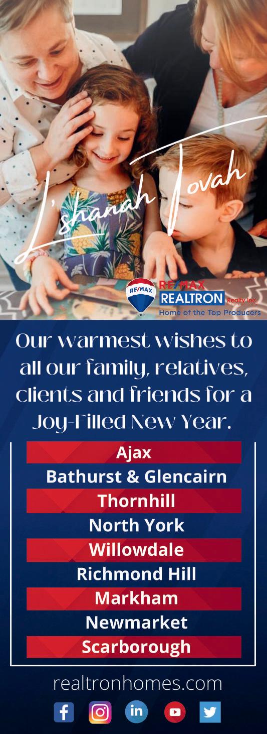 Wishing everyone a Happy and Healthy New Year May this Rosh Hashanah bring blessings of joy, health, and prosperity, and may we all pray for a better year ahead