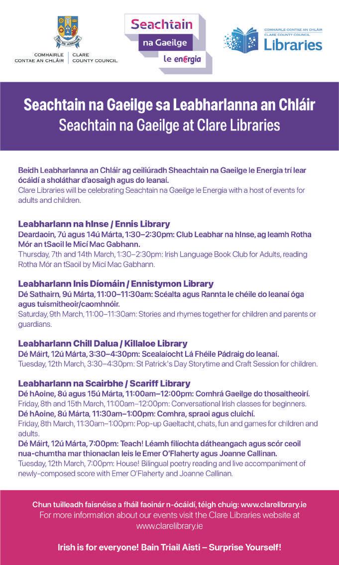 DOONBEG is gearing up for the annual St. Patrick’s Parade prepares to take the streets on Saturday, March 16th. This year’s parade is themed “Going Back to our Roots”. Kicking off at 3:30pm, the floats will parade through Doonbeg and leading the procession will be the wonderful Tulla Pipe Band, returning to Doonbeg again this year. €1,000 in prize money and trophies are up for grabs, with awards presented at a special ceremony at the Igoe Inn following the parade. Assembly will begin at 3:00 PM in Doonbeg GAA field. All are welcome to join in the revelry and experience the magic of St. Patrick’s Day in Doonbeg. For more information visit Doonbeg Community Development’s Facebook Page or contact Nuala Hayes on 086 383 3314.