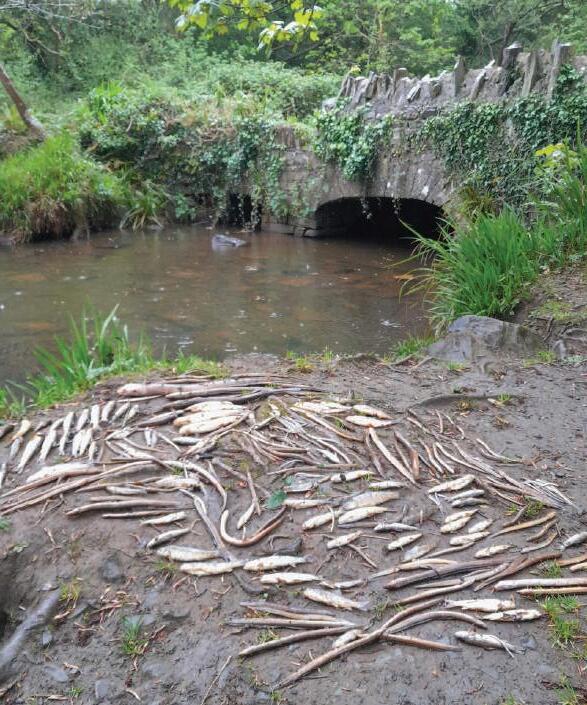 A rusty red colour was first spotted on the Ballymacraven River with the alarm raised with Inland Fisheries Ireland (IFI) on Tuesday last, by Thursday hundreds of dead fish were