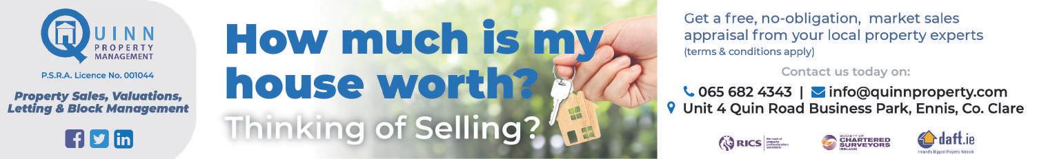 Ten walk-in clinics were held in 2023 across Clare where property owners were allowed to meet Council officials on the eligibility criteria for the Grant which Carmel labelled as “very successful”. She said, “We have 320 applications for the Grant received to date and this is growing each week and enquiries are continuing each week also. We are consid-