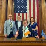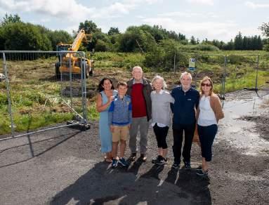 There was great excitement this week with the arrival of Coolsivne Construction to Gaelscoil Donncha Rua to start on their brand new school building project. Pictured are Seán Ó Núanáin (founder of the school), Muireann Uí Chearbhaill (former principal and teacher), Antóin Mac Mathúna ( Chairperson of the Board of Management), Aisling Ní Áirtnéada (Príomhoide/ principal), Sandra Uí Amhragáin (Parents’ Representative of the Board of Management) and Colm Ó hAmhragáin (dalta Rang a 6