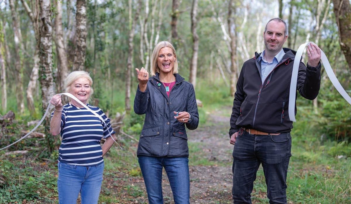 l BIODIVERSITY IN FULL FLOW: Catherine Ni Ciardha, land owner, with Pippa Hackett Minister of State for Land Use and Biodiversity in the Department of Agriculture, Food and the Marine; and Ecologist Barry O’Loughlin, Project Lead cutting the ribbon at the Shanakyle Bog Restoration and Habitat Enhancement Project launch day in Parteen. For more, go to p16.