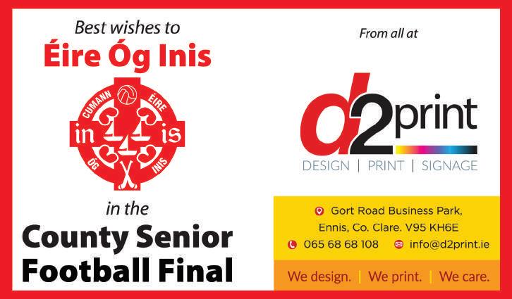 2022 CLARE SENIOR CLUB FOOTBALL CHAMPIONSHIP FINAL Éire Óg v Ennistymon Sunday, October 30, 2pm Cusack ParkSEAN
