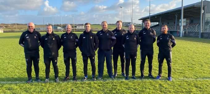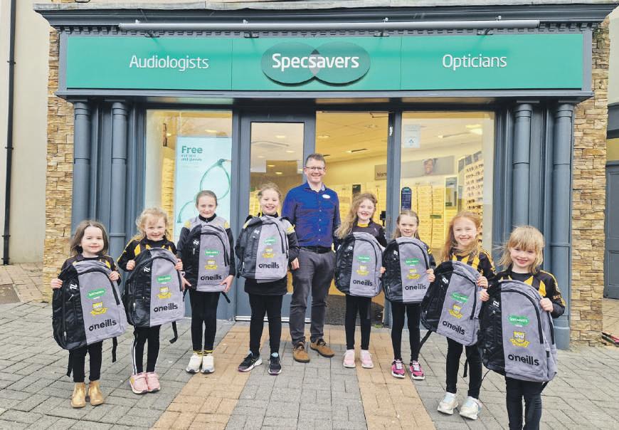John O Farrell of Specsavers Ennis proudly presenting school bags to all the Ballyea Camogie underage girls