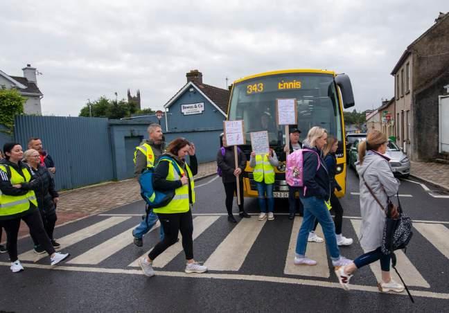 Parents in Sixmilebridge were vocal in their call to give back the school bus. They came out in their droves with over 200 people attending the protest which commenced at 07:20 on Thursday morning, they were joined by students and parents from Newmarket-on-Fergus and surrounding areas.