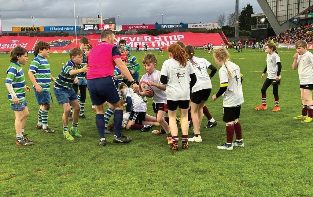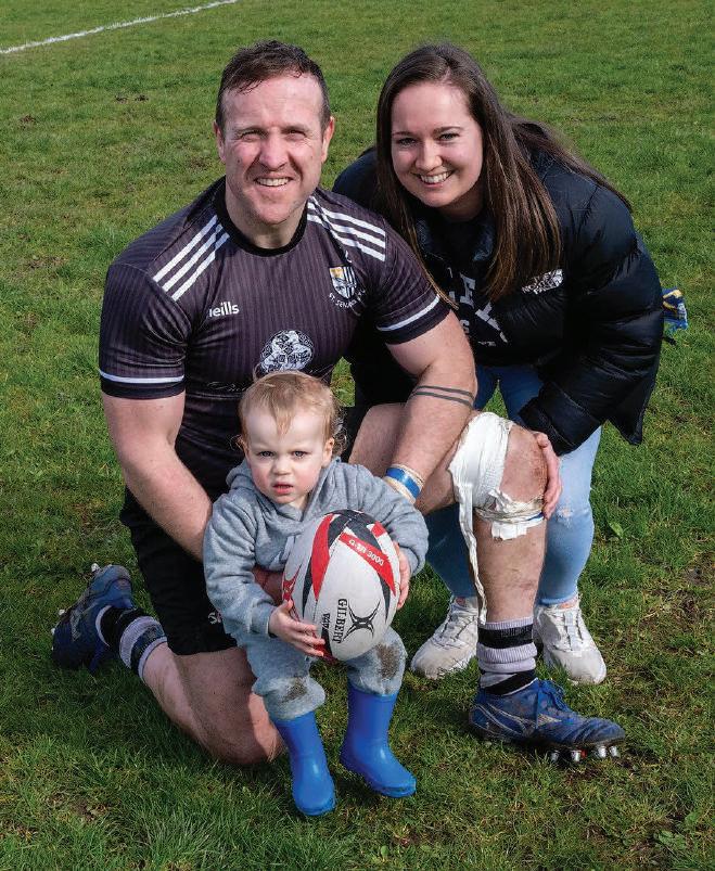 l Fearghal Lawlor with his partner Leanne Boyle and their son Theo celebrating St Senan’s derby win over Ennis RFC at the weekend