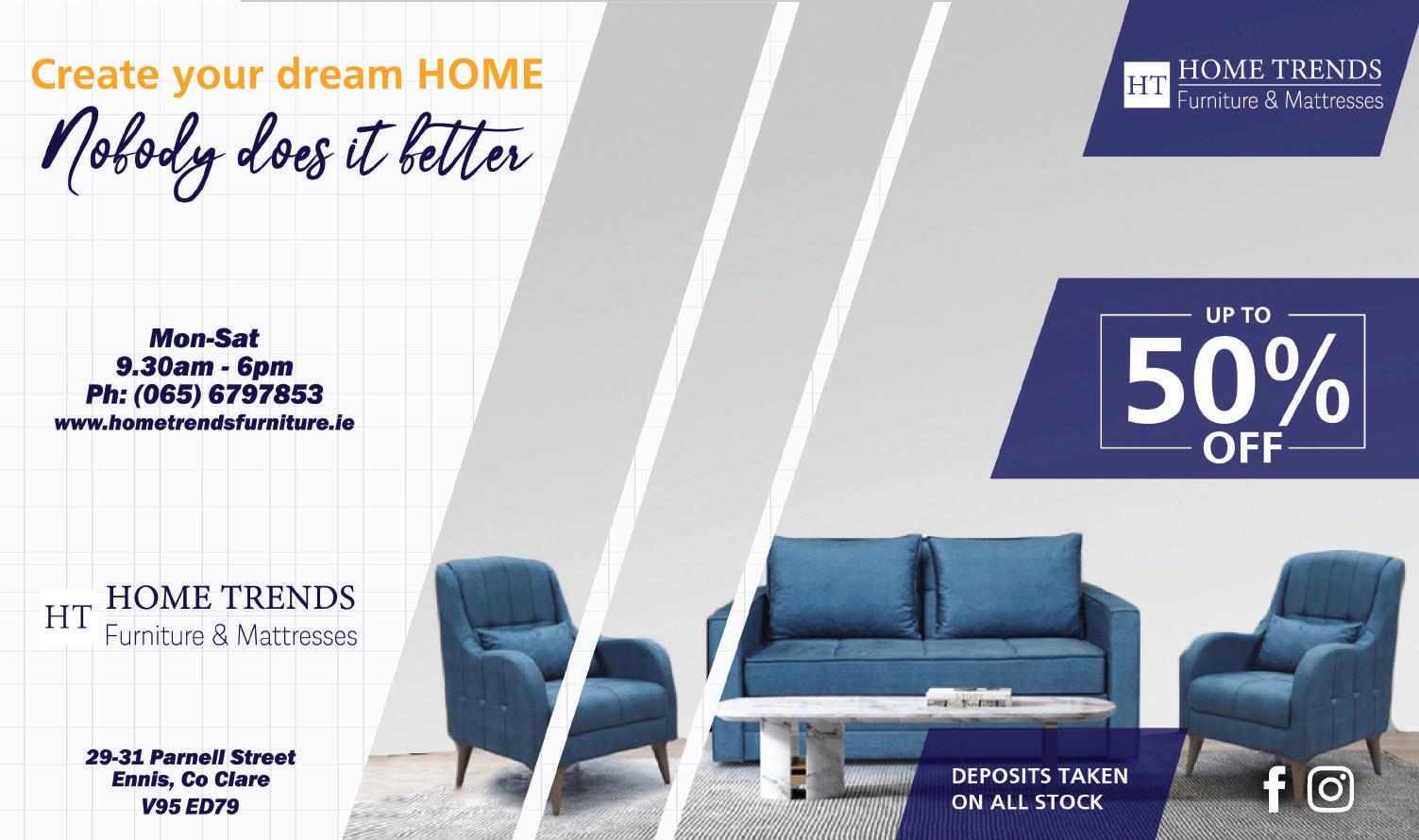 News 3 THE CLARE ECHO Thursday, Mar 30, 2023 Support journalism in Clare by subscribing to www.clareecho.ie/subscribe EASTER SHOP INTERIORS Open Mon - Sat 9.30am - 6pm SUNDAY 1pm - 5pm Kilrush Road, Ennis Ph: 065 6797040 NOW OPEN 20 ALL EASTER STOCK % OFF HomeGallery-East2023.qxp_Layout 1 22/03/2023 14:44 Page 1