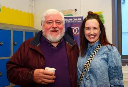 Alan Gough and Newmarket Celtic Chairperson Jody Halpin in jovial form enjoying the weekend’s soccer action. For more on the weekend’s soccer action, see Sport p24