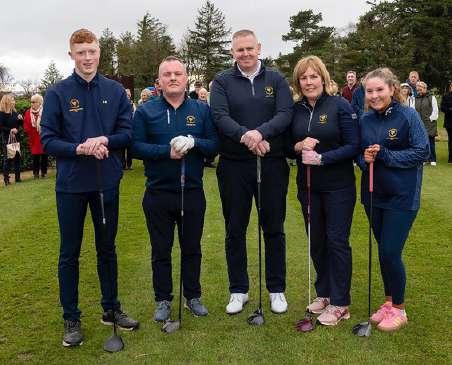 A large crowd of members and families were present for the annual drive-in at Shannon Golf Club on Saturday last. Pictured from left to right are Damien Lyne, Junior Boys Captain, Michael Hickey, President, Colm Hanley, Captain, Sandra Ferguson, Lady Captain and Lucy Twomey, Junior Girls Captain.