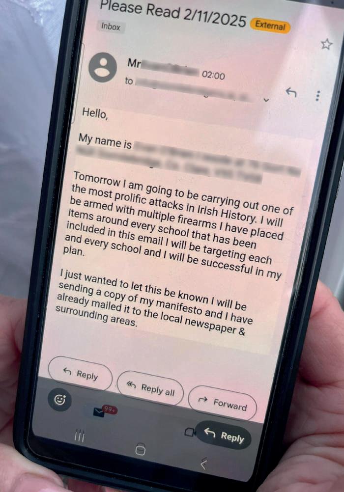Schools in Shannon, Sixmilebridge, Ennis and Newmarket-on-Fergus were forced to close for half and full days on Tuesday as security forces examined the potential threat. Some