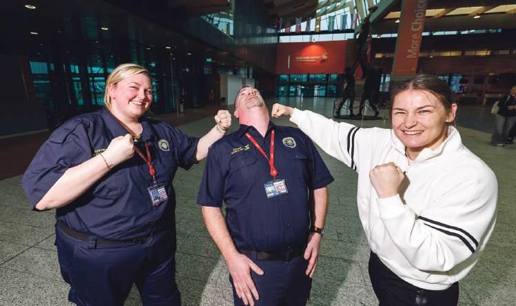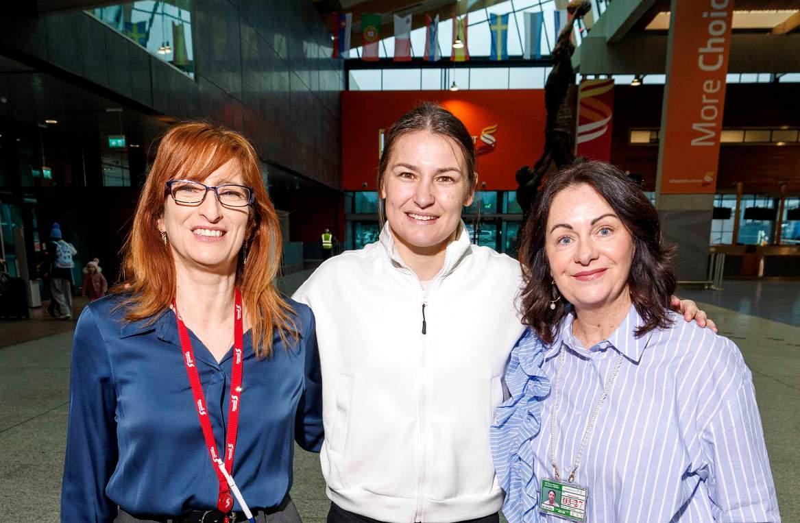 Olympic champion and world champion boxer Katie Taylor pictured at Shannon Airport with Clare U21 hurling manager and St Flannans Harty Cup winning manager Kevin O’Grady (Gort, Co Galway) with his wife Audrey and 5 month old daughter Aoife, on their way to the USA. More in Shannon news, p11