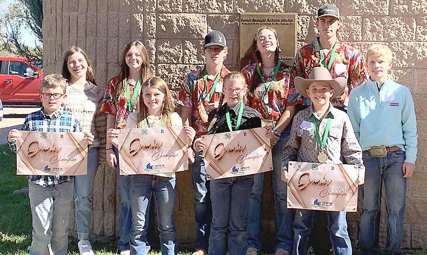Eleven 4-H members competed in the Fall District 1 Big Fun Contests last week. In the Food Show, Emily McCurdy placed third with her Healthy Dessert entry. In the Horse Quiz Bowl, the Senior Divi sion team of Laney Gates, Maloree Wann, Grant Haynes and Levi Gates placed second and will be advancing to State Roundup in June while the Junior Division team of Makynna Williams, Parker Haynes and Ajax Caudle placed fourth. The Junior Division team of Kassie Askew, Adleigh Moore and Teagan Chesser was the first place team in the contest.