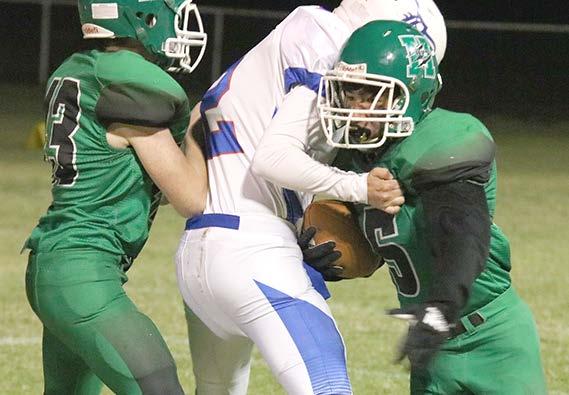 Caleb Herbert had a great game on offense and ran the 106 yards on 17 carries. He hauled in a sevenyard pass from Robinson who went five for nineteen. Herbert also had five tackles, and Robinson had three each.