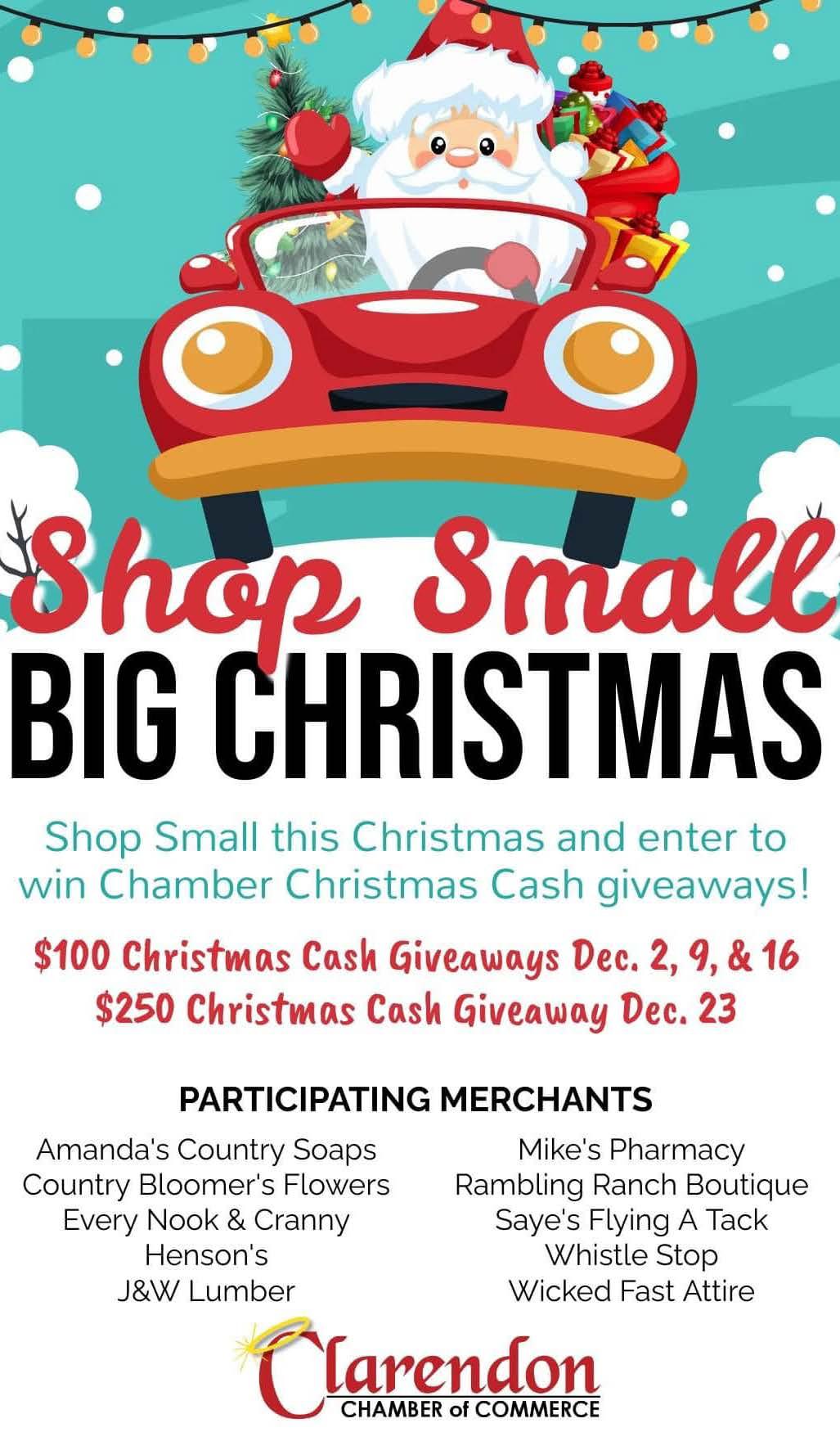 “Shop Small Big Christmas” is the promotion from the Chamber that will put a grand total of $550 in Chamber Christmas Cash in the hands of lucky winners who shop with local merchants.