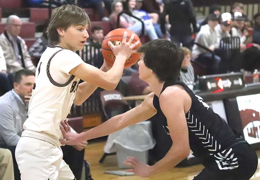 Davis pumps up the crowd with back to back dunks last Friday. ENTERPRISE PHOTO /ROGER ESTLACK Harrison Howard looks for an open teammate last week at home against Bushland. ENTERPRISE PHOTO /ROGER ESTLACK