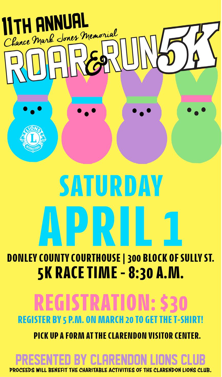 The 11th annual Chance Mark Jones Roar & Run 5K will be held Saturday, April 1, at the Donley County Courthouse.