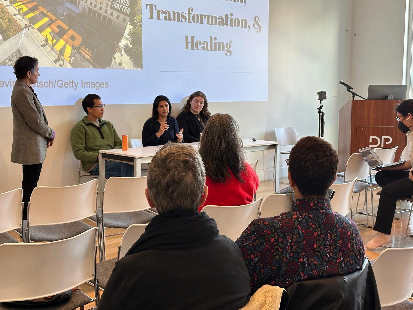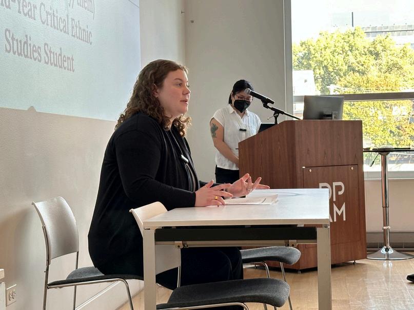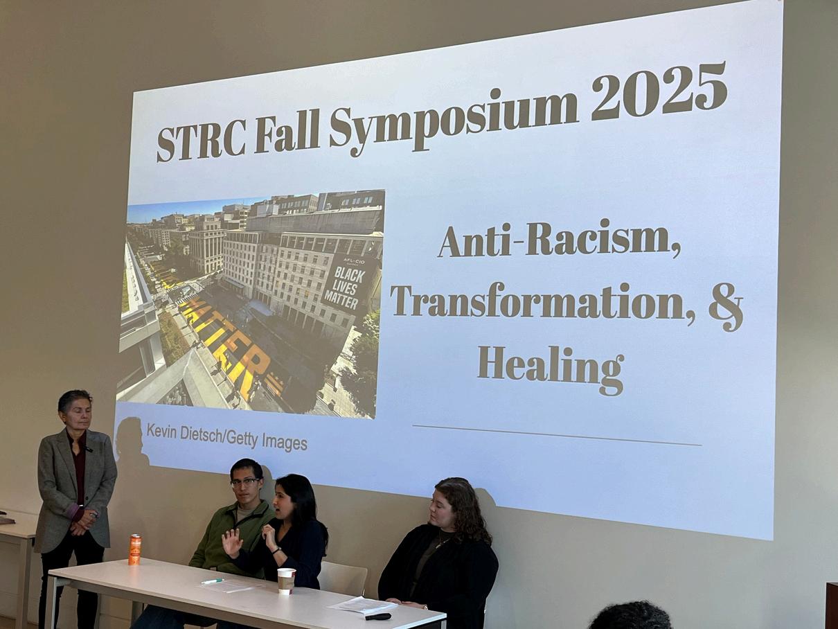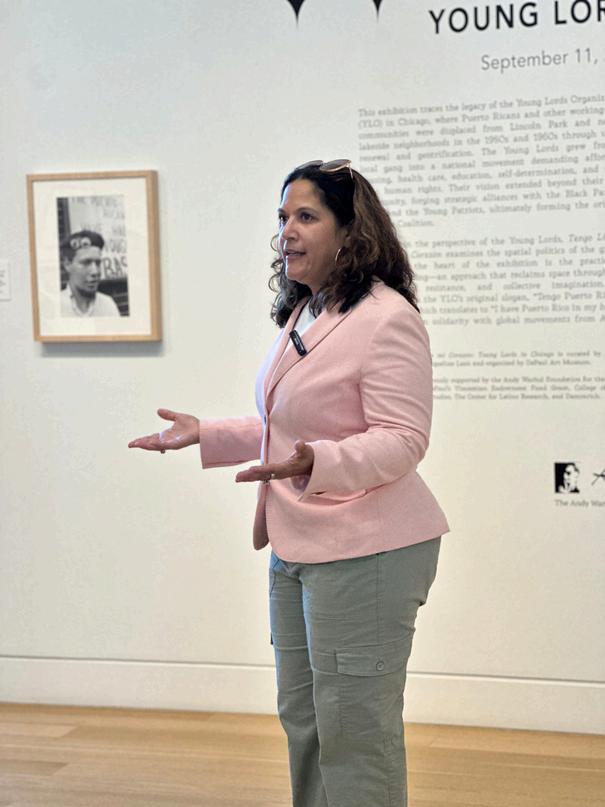 On October21, 2025,the STRC held its annualFallSymposium. DePaulfacultyand students sharedtheirresearch alongside invited guest speakers. Dr.Jacqui Lazú gave a guided gallery tourofherexhibit,"Tengo Lincoln Park en mi corazón:Young Lords in Chicago."Dr. Maria Krysan (UIC) spoke aboutthe historyofsegregation in Chicago, and Dr. Lisa Cacho (Virginia) shared her work onthe"complex innocence"ofvictims ofpoliceviolence. DePaulgraduate students discussedtheirwork on migrant rights, decolonialtheory, and popularculture,while our undergraduatefellows gave posterpresentations ontheirsummerresearch projects.Thankyou to allthe presenters, andtothe DePaulArt Museumforhosting us!