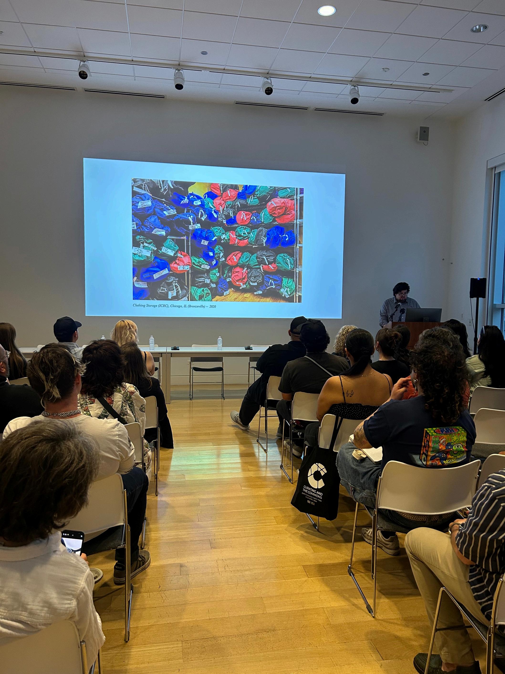 The Center for Latino Research, in collaboration with the DePaul Art Museum, welcomed Latinx Chicago-based photographers Jonathan Michael Castillo, Teresita Carson, Juan Molina Hernandez, and Jonathan Vega. They were able to have the space to talk about their work, as it revolves around themes of immigration, displacement, belonging, grief, memory, and lineage. Their Panel conversation, moderated by DPAM Curator Ionit Behar, Opened a discussion on the different intricacies of their work and how it ties into the cultural fabric of our community. Thank you to DPAM, the fellow artists, and everyone involved In making this collaboration possible.