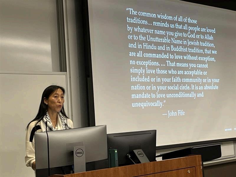 contradictory ways in which government forces have deployed environmental protection laws against undocumented migrants and the activists who seek to protect them from harm. Dr. Paik shared the story of how a group of activists was brought up on charges of “polluting the environment” because they had left water bottles out for thirsty migrants crossing desert areas. Dr. Paik also highlighted how the installation of physical barriers and other technology along the border – such as the border wall or stadium lights – actually contributes to disrupting ecosystems and the natural migration patterns of animals. In the Q&A period following her talk, Dr. Paik answered a range of questions about human rights, environmental regulations, and immigration activism.