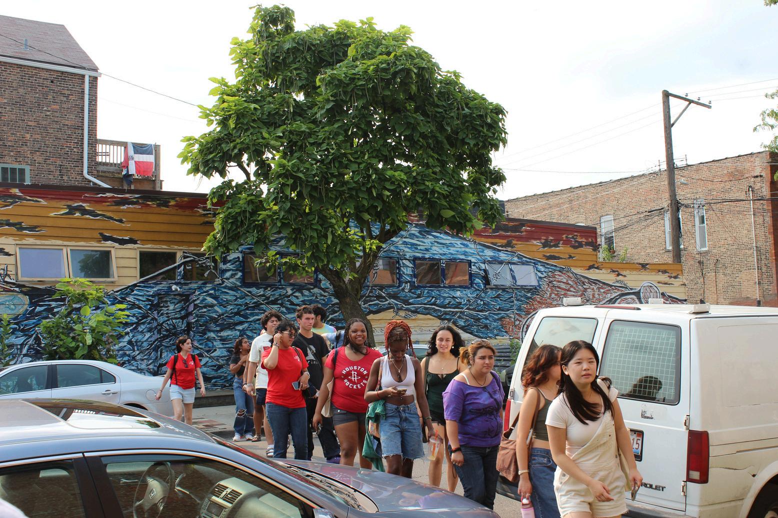 “I first joined the Summer Institute program as an incoming freshman in 2022 and was so honored to return this year as the STRC Social Media Student Assistant. I was so happy to return because of the impact this program had on me as a new student I was originally drawn in by the important themes studied, such as gentrification in Chicago, social justice, and untold/misrepresented history. I was so moved by my time with the program because I learned a lot about those themes, as well as what to expect living in Chicago and attending DePaul. Coming back after two years, I feel that the Summer Institute has only gotten better! The adjustments made to the scheduling, field trips, and final project made for an amazing experience for me, my peers, and the students. Since the program takes place in July, it was hot almost every day we went out. That being said, the staff planned weather-appropriate activities that were enjoyable despite the heat. For example, we took an amazing tour of the Pilsen neighborhood led by Dr Juan Mora-Torres It was planned so well because we were able to see the beauty and history of the neighborhood and still had moments to cool off, decompress, and take in our surroundings. The field trips also consisted of eating excellent local food which was a huge hit with students and staff alike My favorite was Pearl’s Place in Bronzeville.