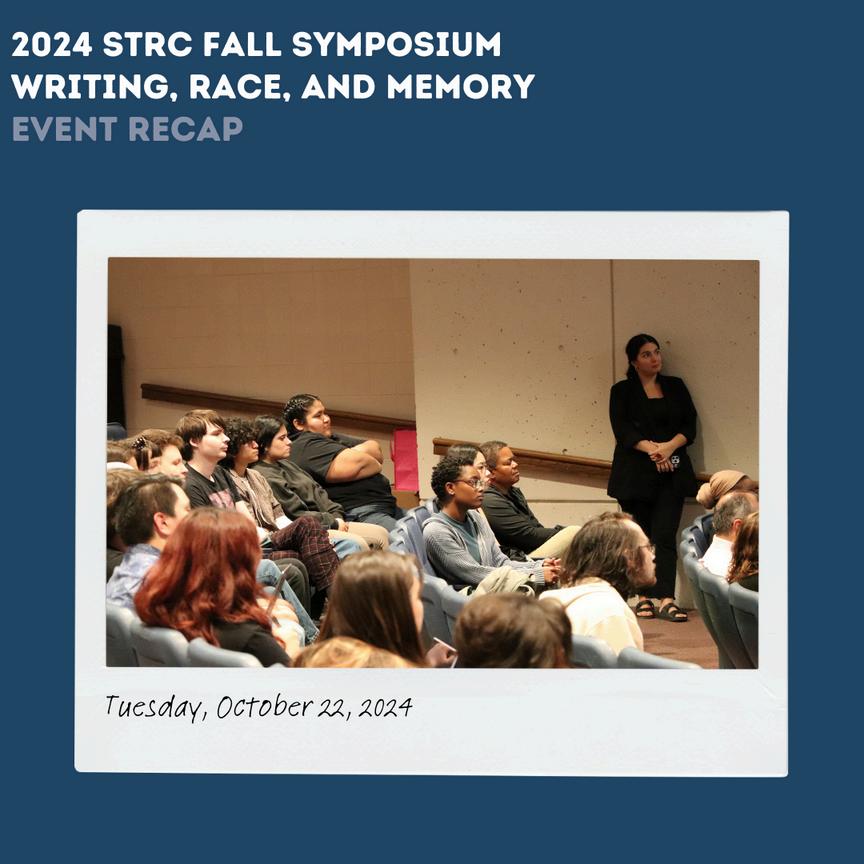 Thank you to everyone who joined us for the STRC's third annual fall symposium! Special thanks to all our wonderful speakers: Graduate fellows Elizabeth Wallace, Claudia Cisneros Méndez, and Sophia Burns; our postdoctoral fellows, Dr. Miguel Ángel Castañeda and Dr. Taurean J. Webb; author Beverly Jenkins and Dr. Carole V. Bell; undergraduate research fellows Abby Flores, Naomi Love, Sifa Muderhwa, Chris Sifri, Aidan Tennant, and Jo Trasowech; author Karla Cornejo Villavicencio and Dr. Lourdes Torres; faculty fellows Dr. Maria Ferrera, Dr. Jacqui Lazú, Dr. Rocío Ferreira, and Dr. Juan Mora-Torres, and last, but definitely not least, author David Mura.