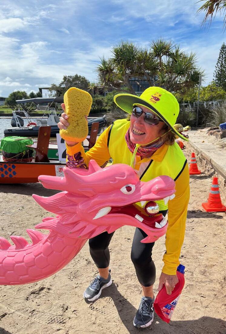 At the 1770 Dragons, she volunteers in every situation to assist and help others. She is a paddler, a sweep and can fill the role of coach when needed. She assists with catering at the Bowls Club, 1770 Art Show, Market BBQ, Melbourne Cup Crab races, Triathlon BBQ, Volunteer at the Blues Festival, Volunteer at the 1770 Festival… really any community event where help is needed.