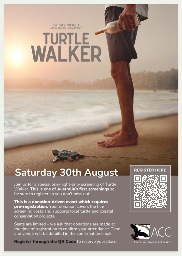 Entry is by donation, with proceeds helping to cover the cost of the screening and support local turtle and coastal rehabilitation projects. Children under 17 can attend for free when accompanied by an adult. Venue details will be provided upon registration.