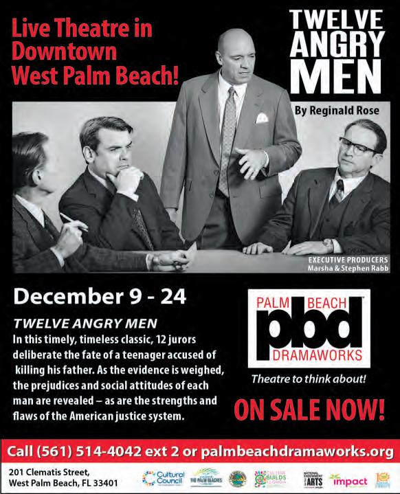 12/9-24 - Twelve Angry Men at Palm Beach Dramaworks, 201 Clematis St, West Palm Beach. Call for times/prices: 561-514-4042, ext 2; palmbeachdramaworks.org.
