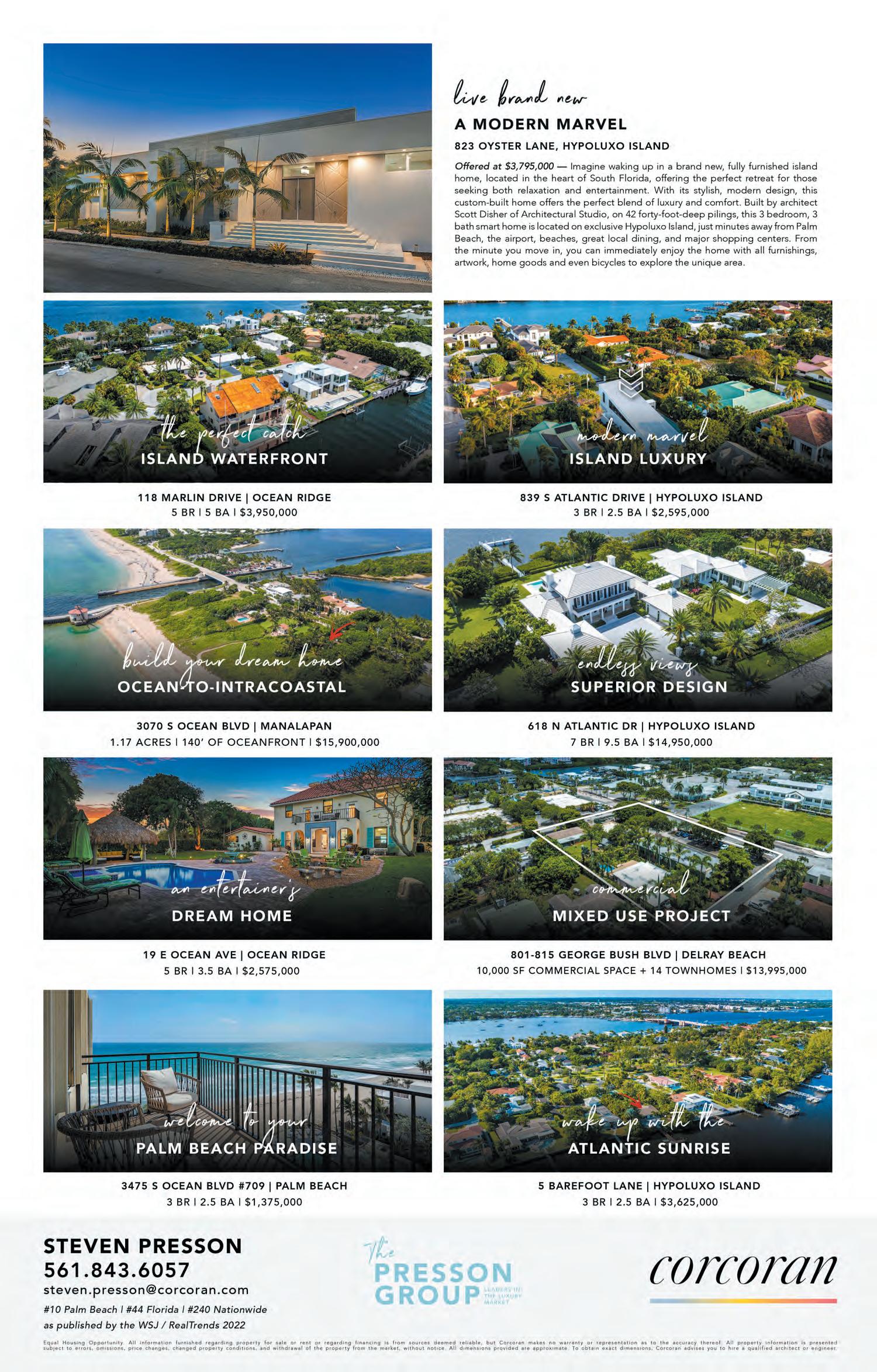 The Coastal Star is a monthly newspaper with two editions serving Hypoluxo Island, South Palm Beach, Manalapan, Ocean Ridge, Briny Breezes, Gulf Stream and coastal Delray Beach; Highland Beach and coastal Boca Raton.