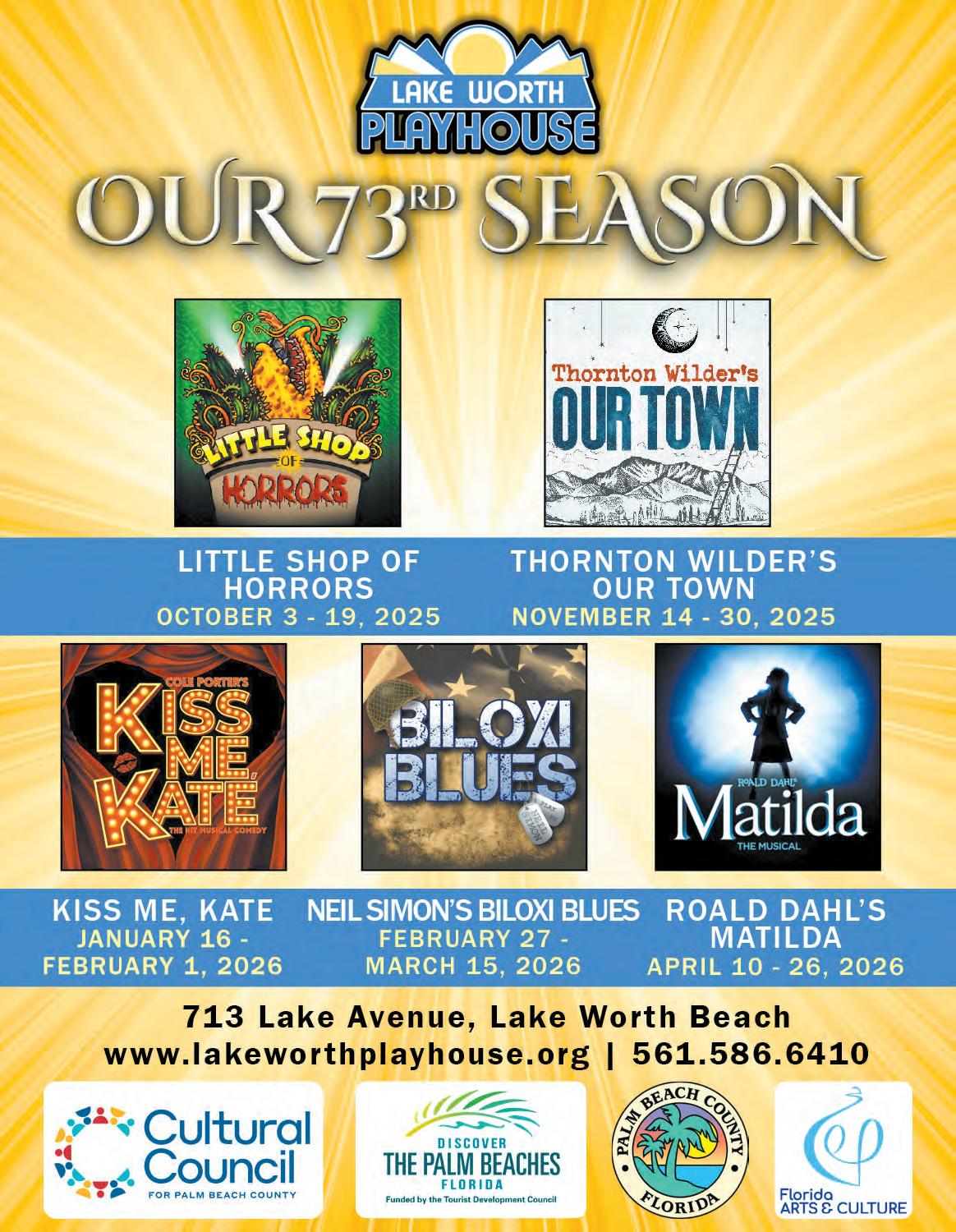 10/24-26 - Churchill starring David Payne at The Delray Beach Playhouse, 950 NW 9th St. F/Sat: 7:30 pm; Sat/Sun: 2 pm. $60. 561-2721281; delraybeachplayhouse.com 10/24-26 - Stripped Down Studio: Selections from The Possibilities at FAU BrandStar Studio, 777 Glades Rd, Boca Raton. F/Sat: 7 pm; Sat/Sun: 2 pm. $12-$15. 561-2976124; fauevents.com