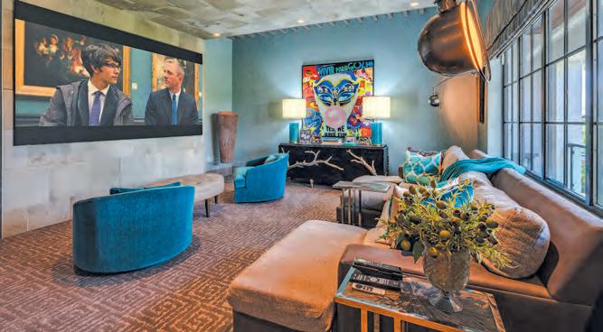 LEFT: Upstairs on the second floor, sharing a balcony with two guest suites, is a comfortable home theater with large screen and projector.