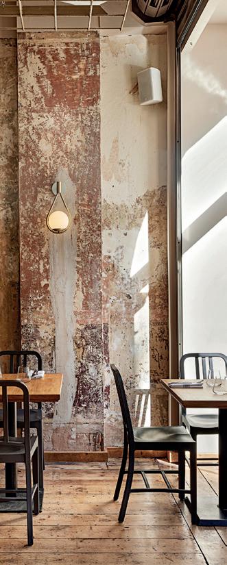 us, pointing at the pillars and concrete floors that prove it. Under the team’s direction there’s a communal table/bar top that takes centre stage, with separate tables and chairs dotted around for those who don’t want to be part of the action.