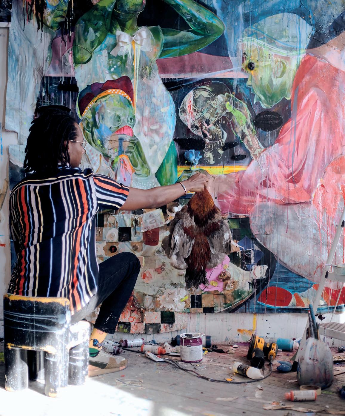 The studio is a very sacred space. The practice is extremely spiritual. My focus is heightened, somewhat like when one is in a church, synagogue, or mosque. I enter the space with the intention of engaging in critical dialogues. It is my belief that when I am making art, I’m being guided by a higher entity or being. There is an unexplainable connection that happens, which allows me to connect and communicate through the paintings and objects being made in the studio.
