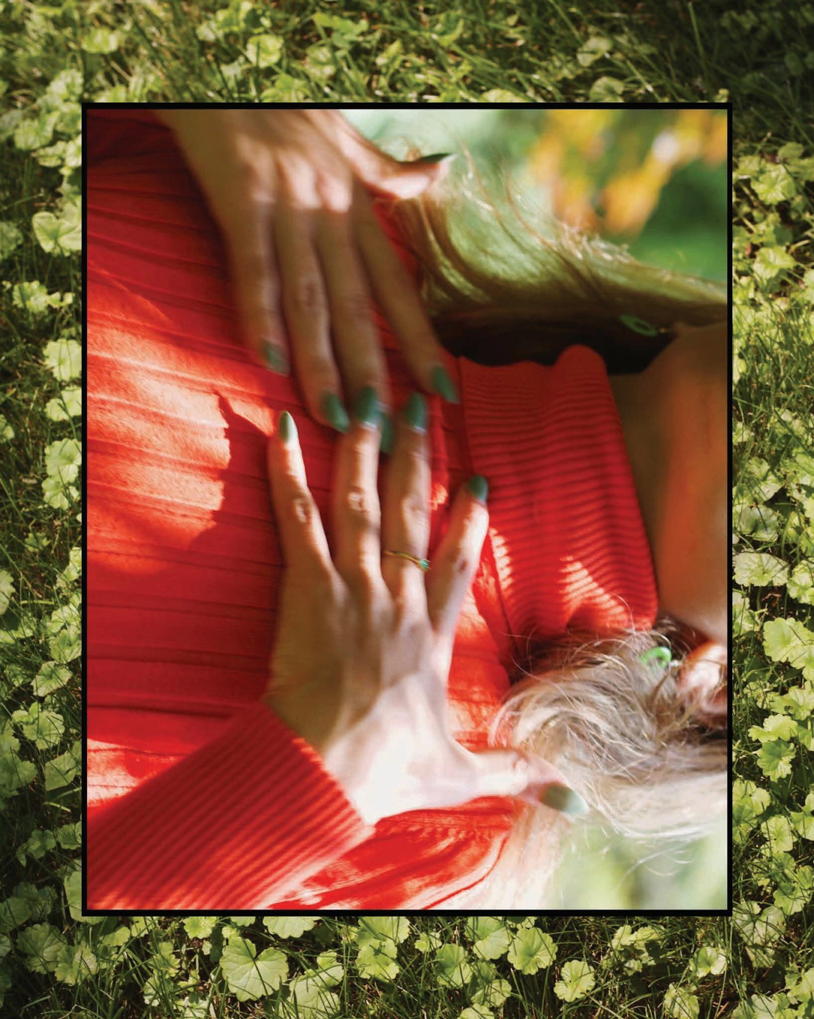 “For the cherry piece, that one was sort of about my relationship with myself, but also growing up with a sister. If you’ve grown up with siblings, specifically if you’ve had a sister, it’s like, your mom always dressed you the same, and I guess a pretty big chunk of your identity is formed around that relationship.