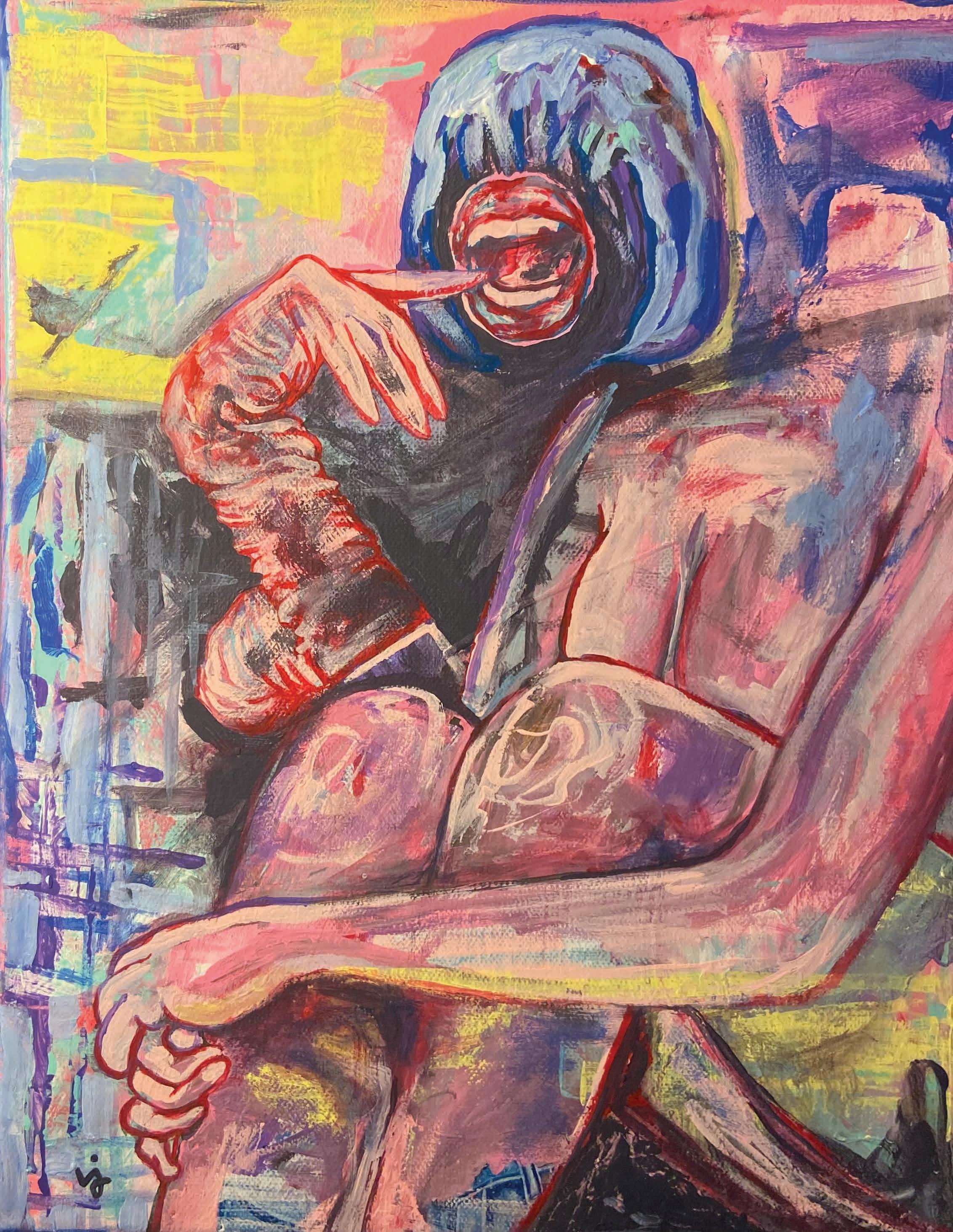 “Definitely. I’ve written music since I was around twelve years old, which is something that I kept very private, and I’ve also created art since I was a kid, which I got more academic validation from and felt more comfortable showing off. I remember when I was fifteen, I had this mental breakdown where I was like, ‘I need to choose one.’ But, now, I see both of those art forms as equally worthy of my time. It’s very rewarding to me, and they feed each other. Many of the songs I write deal with similar themes that I address in my work.”