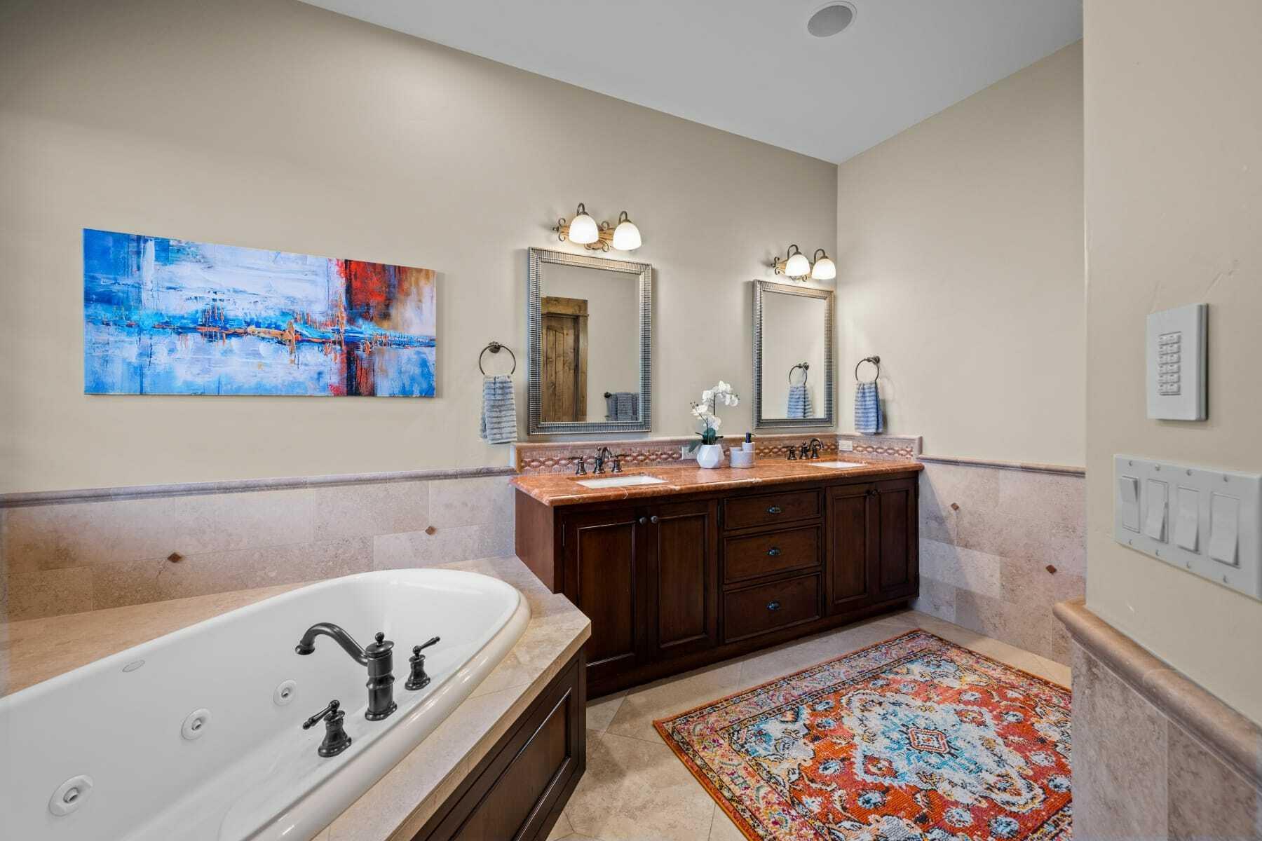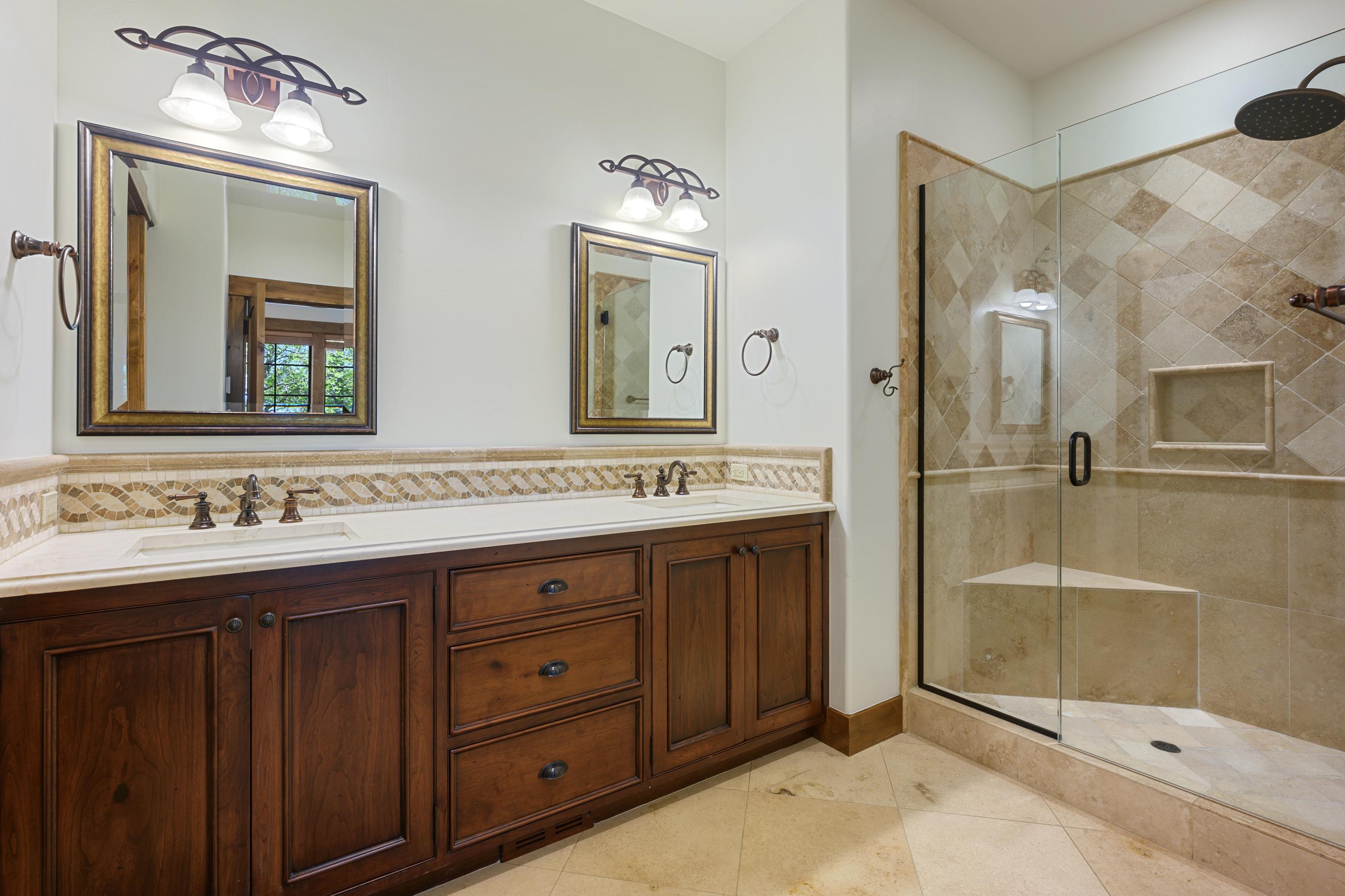 ● Tiled Bath with Dual Sinks, Walk in Shower & Slab Countertop