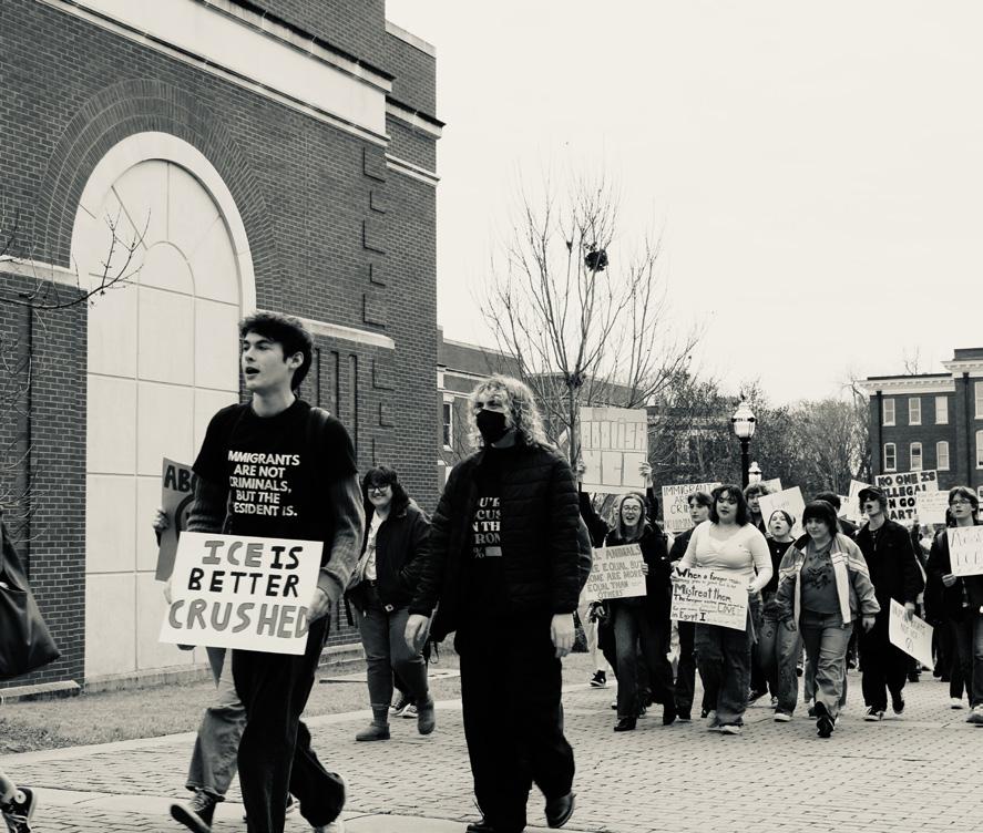 Students walked out of class on Friday, Jan. 30, at 11:30 a.m. to gather at the Arts & Sciences fountain and march around campus to speak out against the U.S. Immigration and Customs Enforcement’s (ICE) recent involvement in the deaths and deportation of citizens.