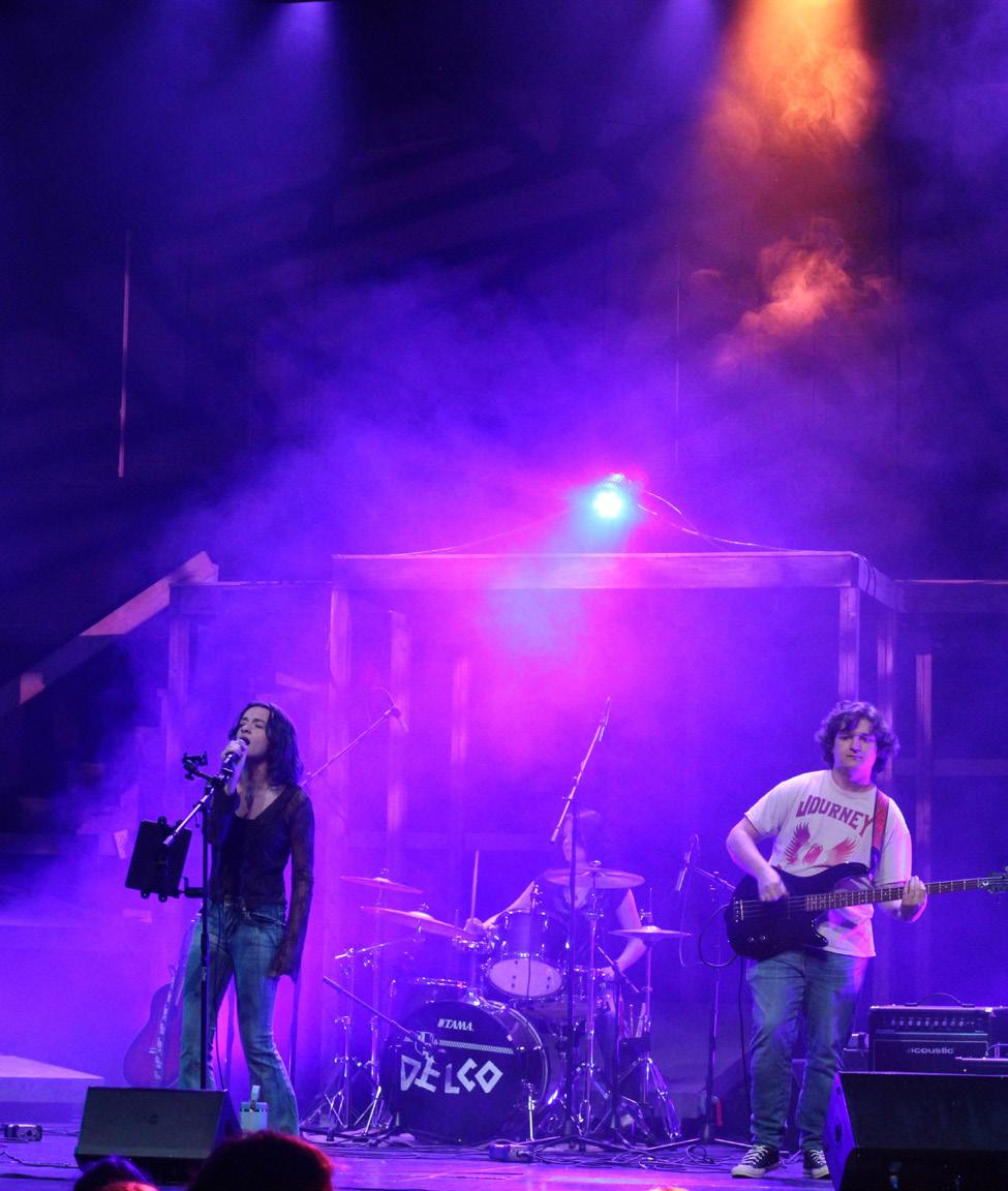 Each band’s performance brought a different sound and vibe to Russell Auditorium. From original songs to covers of well-known hits, the groups kept the audience engaged throughout the night. Friends and fans waved their phone flashlights in the air while others crowded near the front of the stage, creating a concert-like atmosphere.