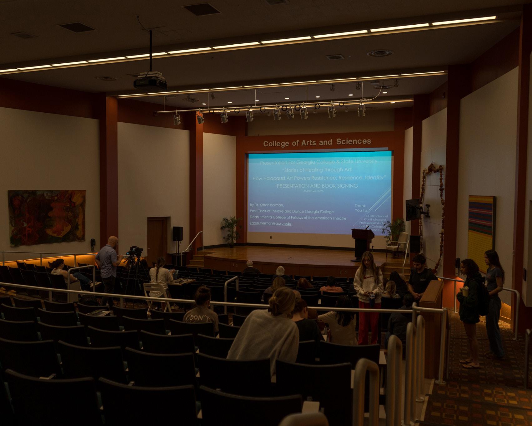 Dr. Karen Berman, former chair and artistic director of the Department of Theatre and Dance at GCSU, led a presentation and book signing for her latest work, “Stories of the Holocaust: Art for Healing and Renewal, Volume II,” on Wednesday, March 25, at 5 p.m. in the A&S Auditorium.