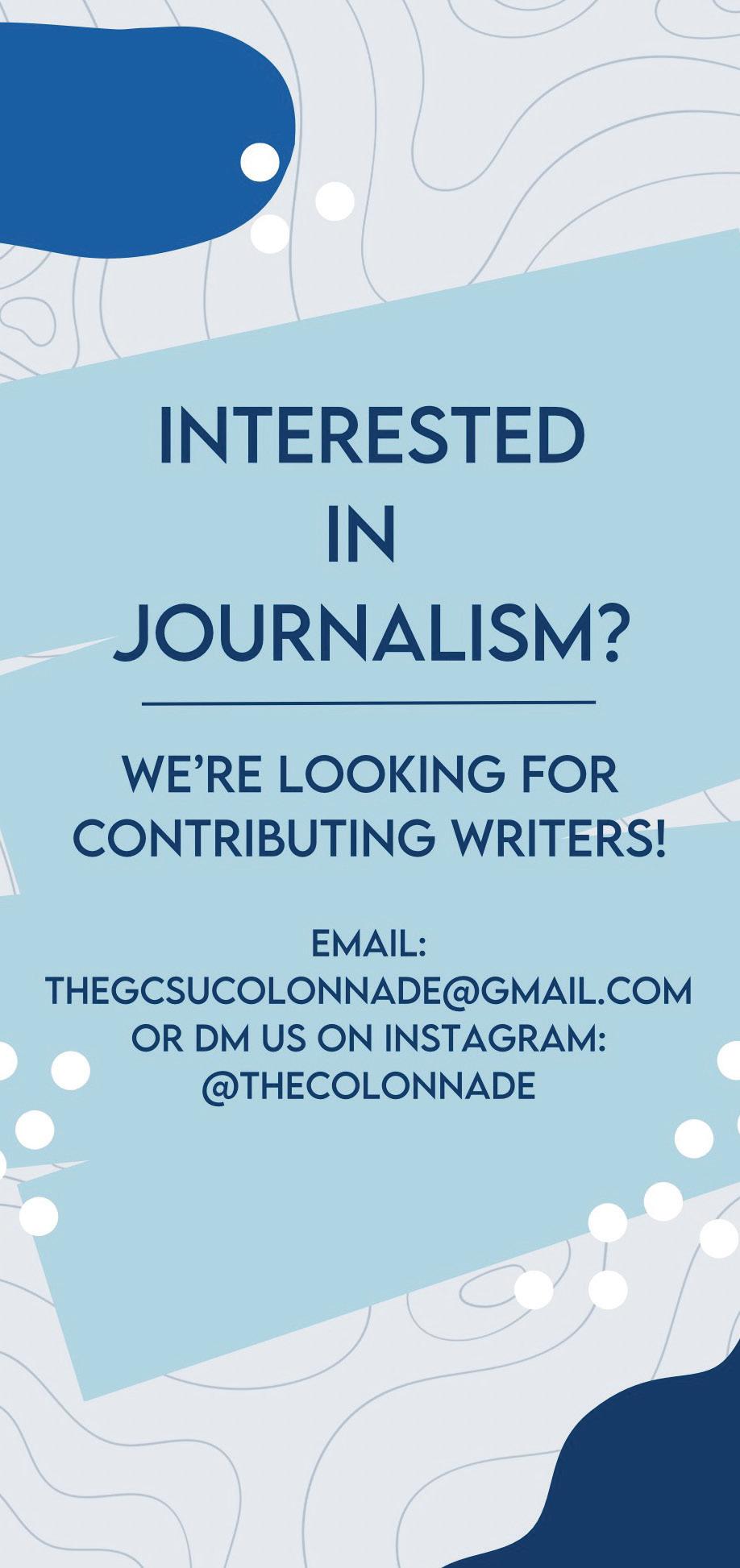 rst practicum, in fall 2022. I was a sta writer. I wrote one article per week, all of which were for Arts & Life. At the time, former editor-in-chief Jen Crider was the head A&L editor. She and I became friends. at December, Katie Futch, the editor-in-chief at the time, asked me if I wanted to be the paper’s managing editor. Of course, I said, “Yes.” A year and a half later, here we are.