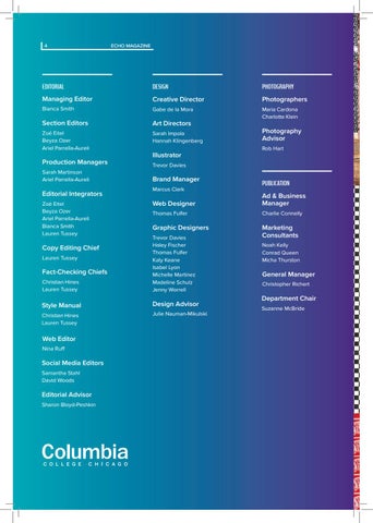 Editorial Integrators ZoĂŤ Eitel Beyza Ozer Ariel Parrella-Aureli Bianca Smith Lauren Tussey